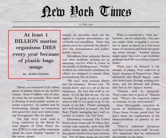 因塑料制品而失去生命