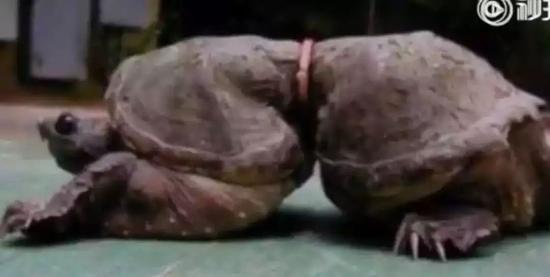 被塑料圈勒到变形的海龟
