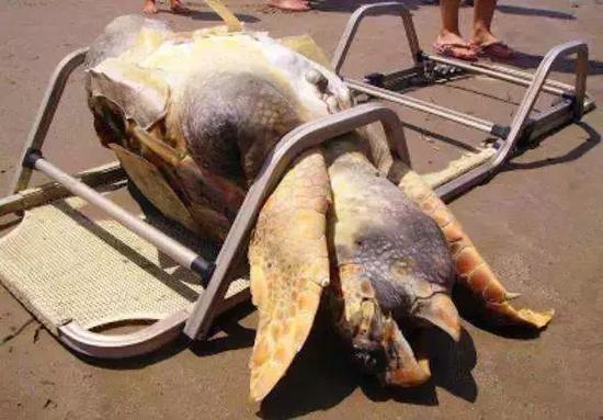 意外钻进塑料套里被活活饿死的海龟