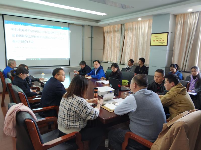 会议上,孙峻同志系统介绍了十九届四中全会召开的详细信息,带领各位党员重点学习《中共中央关于坚持和完善中国特色社会主义制度 推进国家治理体系和治理能力现代化若干重大问题的决定》和《习近平:关于〈中共中央关于坚持和完善中国特色社会主义制度推进国家治理体系和治理能力现代化若干重大问题的决定〉的说明》,并结合近期国内外政治经济形势及重大事件,详细阐述了全会《决定》的具体内容。