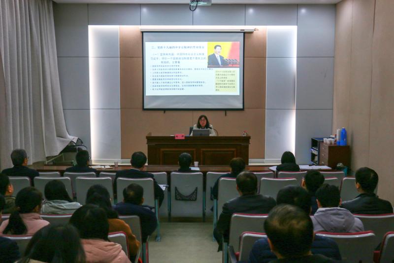 魏群教授围绕党的十九届四中全会召开的时代背景、全会《决定》的体系内容、全会精神的贯彻落实三个方面,深入阐释了党的十九届四中全会的重大意义,阐述了中国特色社会主义制度和国家治理体系的显著优势,对全会《决定》提出的总体要求、总体目标和重点任务进行了系统解读,对如何贯彻落实党的十九届四中全会精神进行了具体指导。宣讲报告聚焦重点和关键,内涵丰富、系统全面,深入浅出、鲜活生动、论述精辟,参加宣讲报告会的党员同志深受启迪,倍受教育。