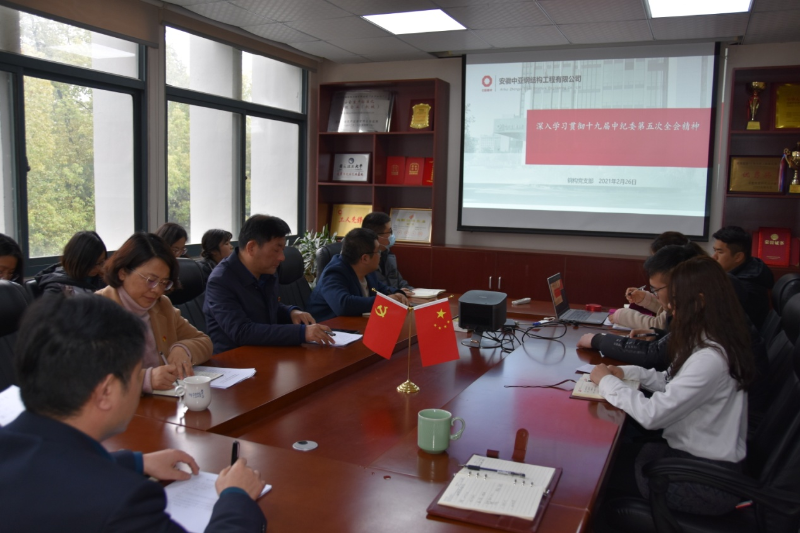 2月26日下午,钢构公司党支部召开支部大会,专题学习传达十九届中纪委五次全会精神,公司党支部书记、总经理计康生主持会议。