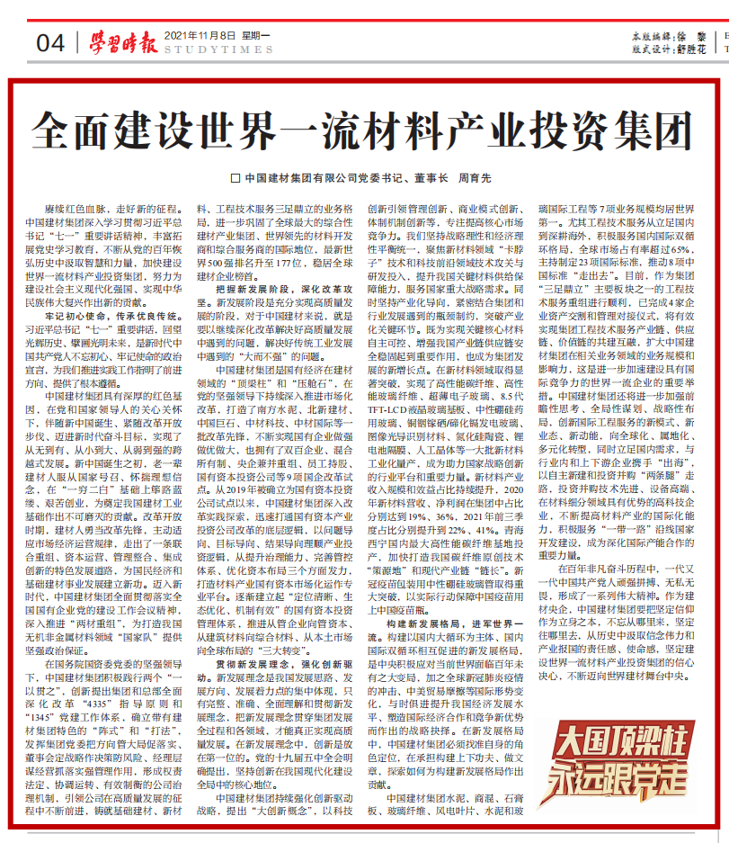 《学习时报》刊发周育先署名文章:全面建筑世界一流材料产业投资集团