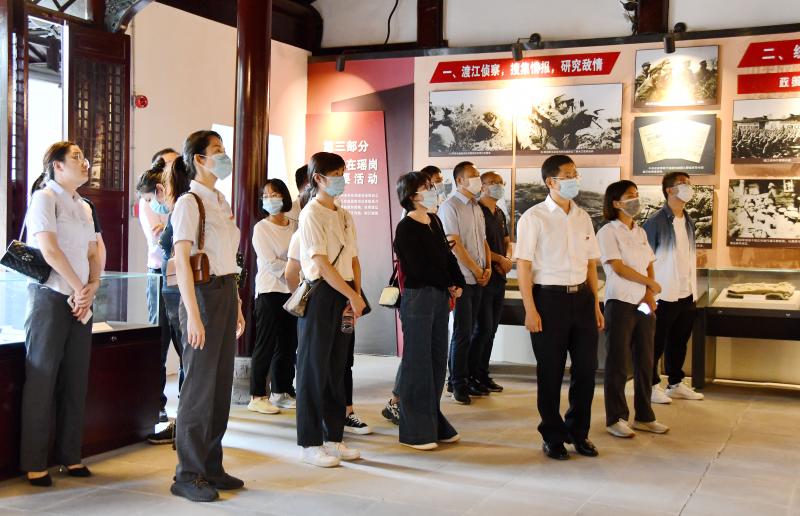 主题党日环节,双方支部党员参观了肥东县瑶岗渡江战役总前委旧址纪念馆,集体重温入党誓词。接着,大家在志愿者的介绍下回顾我们党“打过博鱼APP下载去,解放全中国”的那段战火岁月,深情缅怀革命先辈的丰功伟绩。狭小局促的房间、古色质朴的家具、会议室里悬挂的战役线路图,无一不展现着当年渡江战役的严峻形势和最终取得胜利的来之不易。