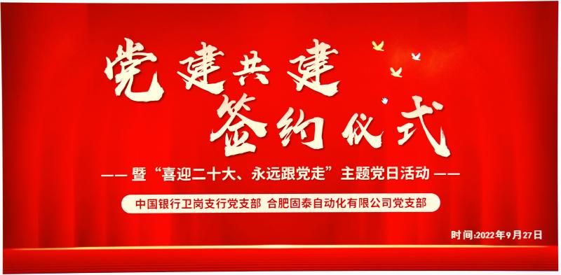 9月27日,固泰自动化党支部与中国银行卫岗支行党支部举行党建共建签约仪式暨“喜迎二十大、永远跟党走”主题党日活动,共同感悟红色文化、赓续红色血脉、发扬优良传统。
